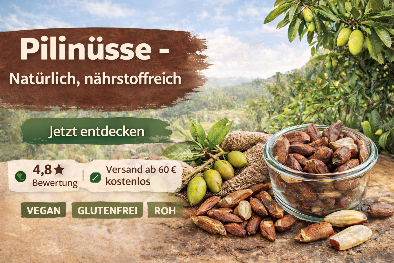 Die Pilinuss stammt aus den tropischen Wäldern der Philippinen und gehört zu den nährstoffreichsten Nüssen der Welt. Bei Pilipur bieten wir ausschließlich rohe, schonend getrocknete Pilinüsse an – ohne Röstung, ohne Zusätze, ohne künstliche Verarbeitung. So bleibt die natürliche Qualität erhalten.